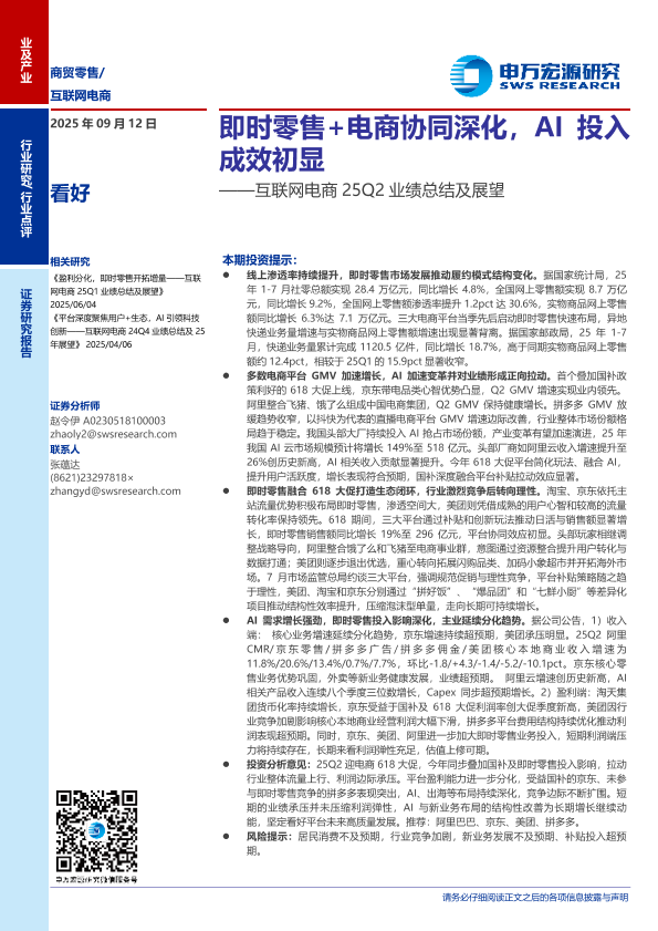 【申万宏源】【202509】互联网电商25Q2业绩总结及展望:即时零售+电商协同深化,AI投入成效初显-18页