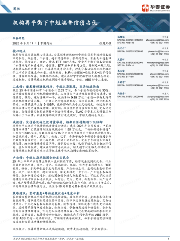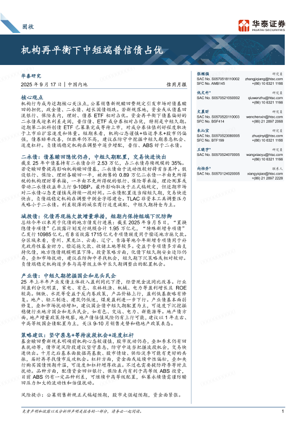 【华泰证券】【202509】机构再平衡下中短端普信债占优-33页