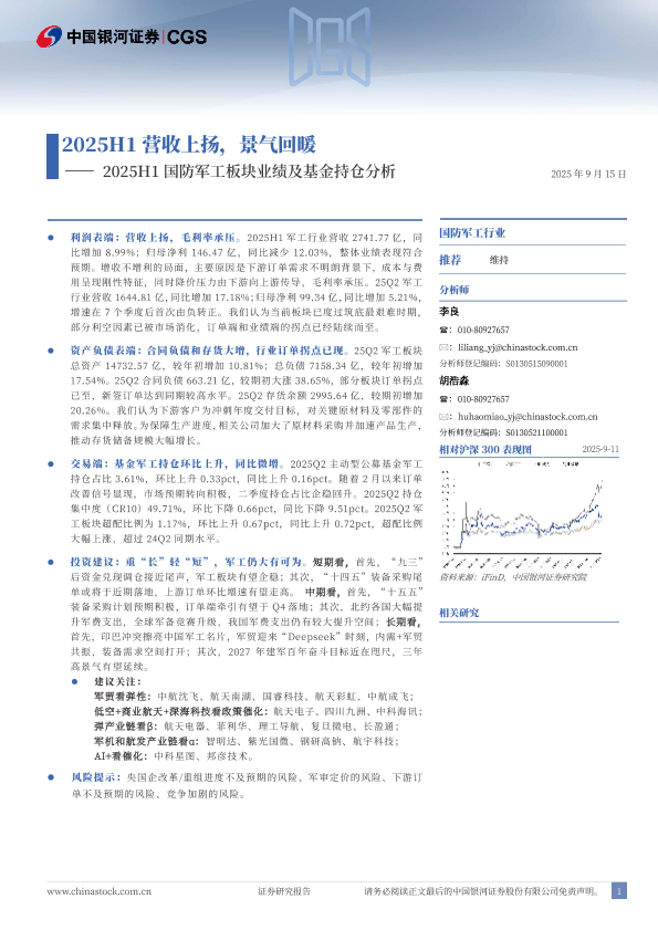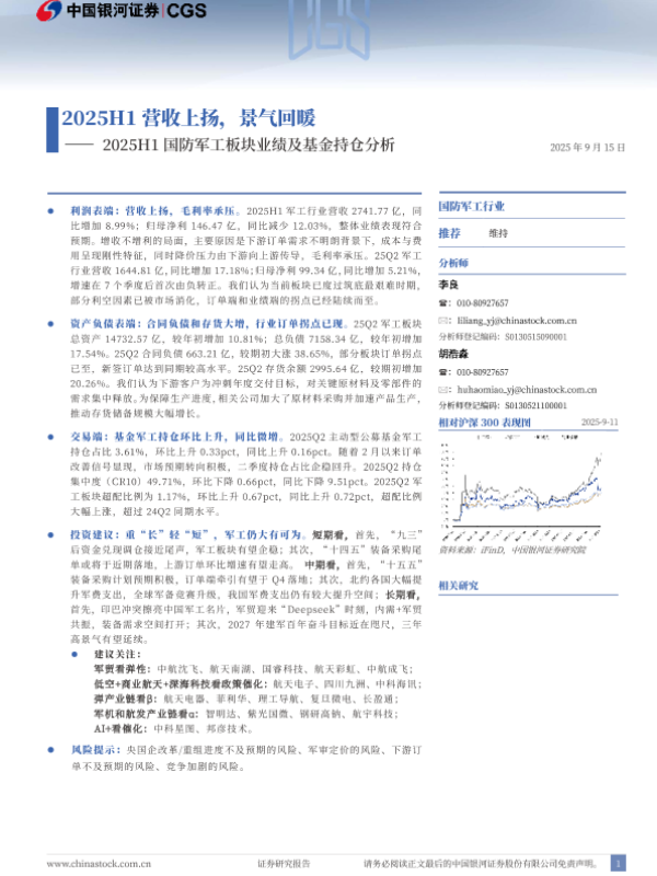 【银河证券】【202509】2025H1国防军工板块业绩及基金持仓分析-21页