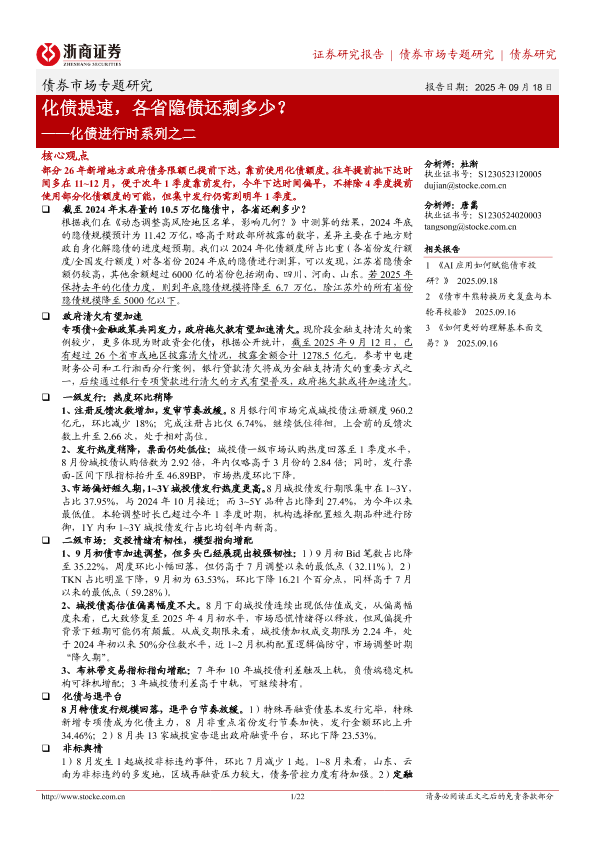 【浙商证券】【202509】化债提速,各省隐债还剩多少?——化债进行时系列之二-22页
