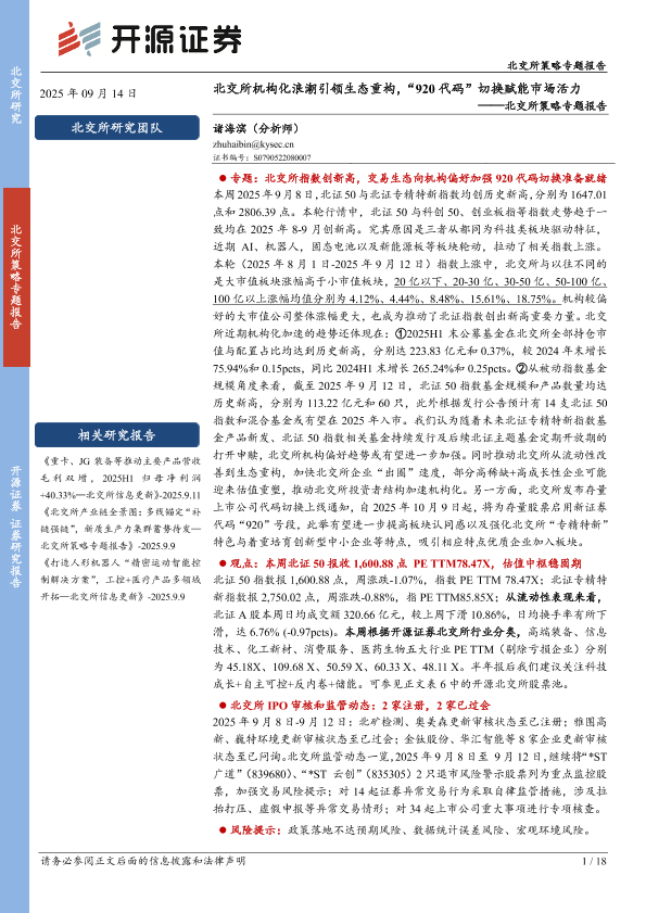 【开源证券】【202509】北交所机构化浪潮引领生态重构,“920代码”切换赋能市场活力-18页