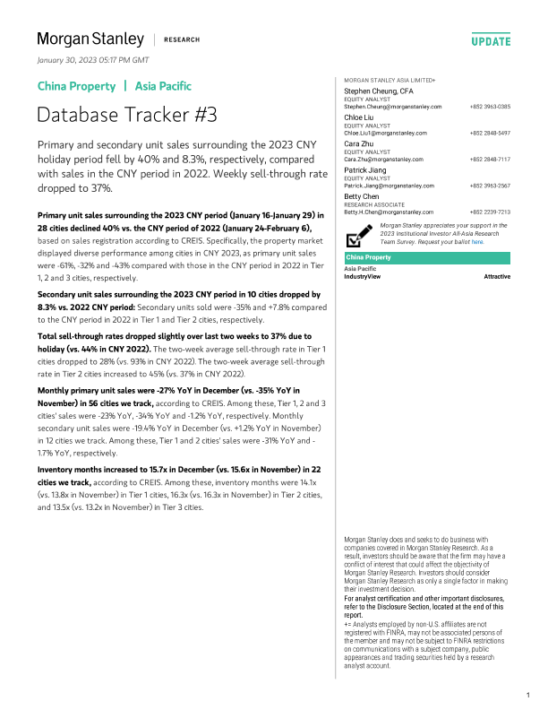 【Morgan Stanley】【20230130】Morgan Stanley-China Property Database Tracker #3-30页