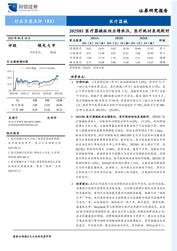 【财信证券】【202509】医疗器械行业月度点评:2025H1医疗器械板块业绩承压,医疗耗材表现较好-12页