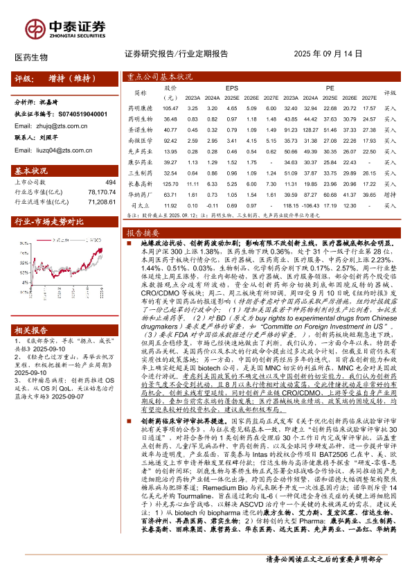【中泰证券】【202509】医药生物行业:地缘扰动不改创新主线,集采规则持续优化-12页