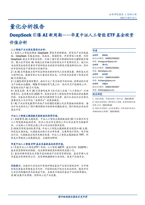【国盛证券】【202509】华夏中证人工智能ETF基金投资价值分析:DeepSeek引爆AI新周期-10页