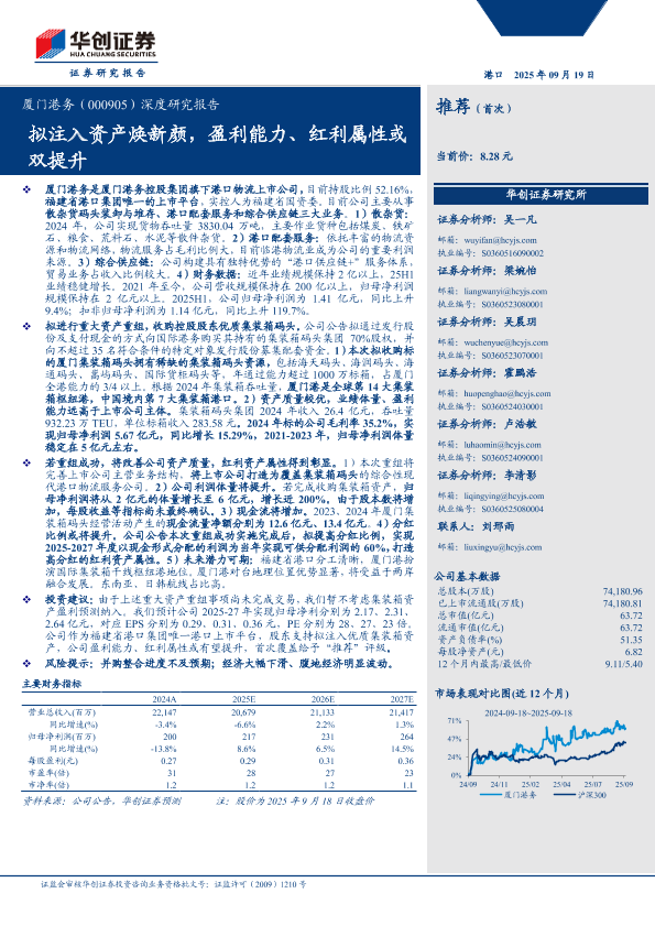【华创证券】【202509】厦门港务(000905)深度研究报告:拟注入资产焕新颜,盈利能力、红利属性或双提升-29页