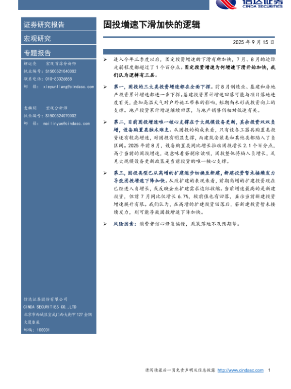 【信达证券】【202509】固投增速下滑加快的逻辑-10页