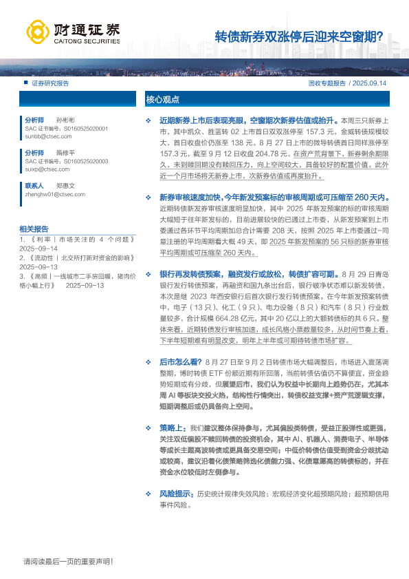 【财通证券】【202509】转债新券双涨停后迎来空窗期?-14页