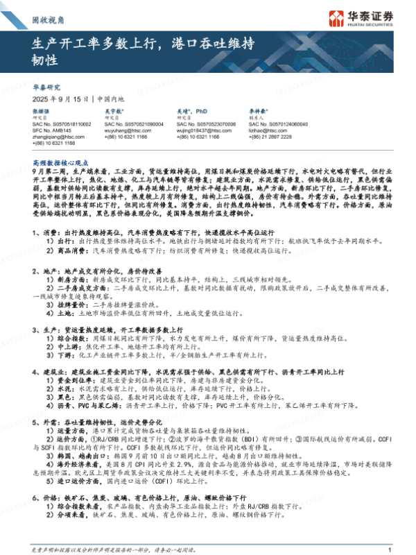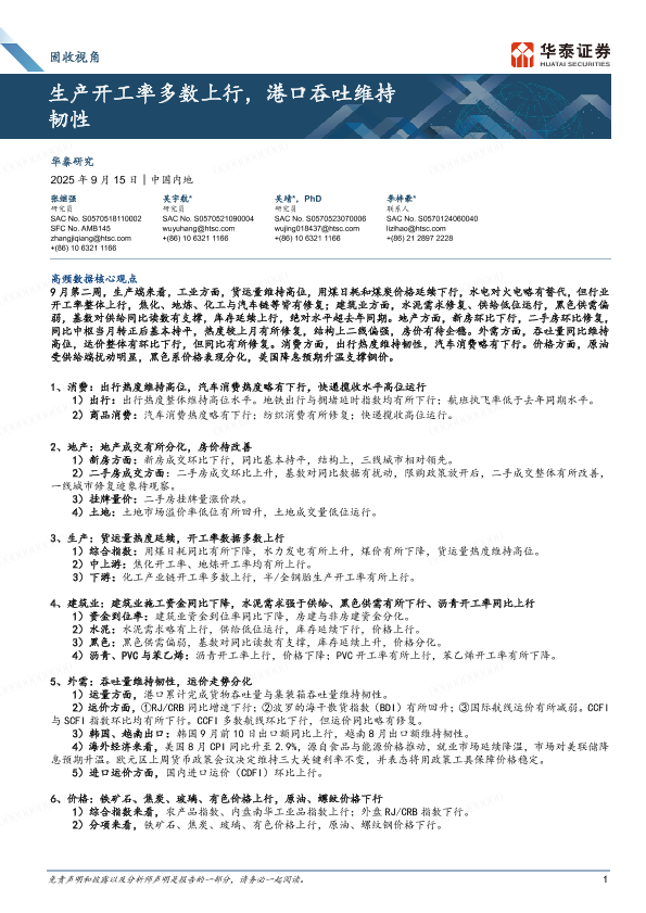 【华泰证券】【202509】固收视角:生产开工率多数上行,港口吞吐维持韧性-14页