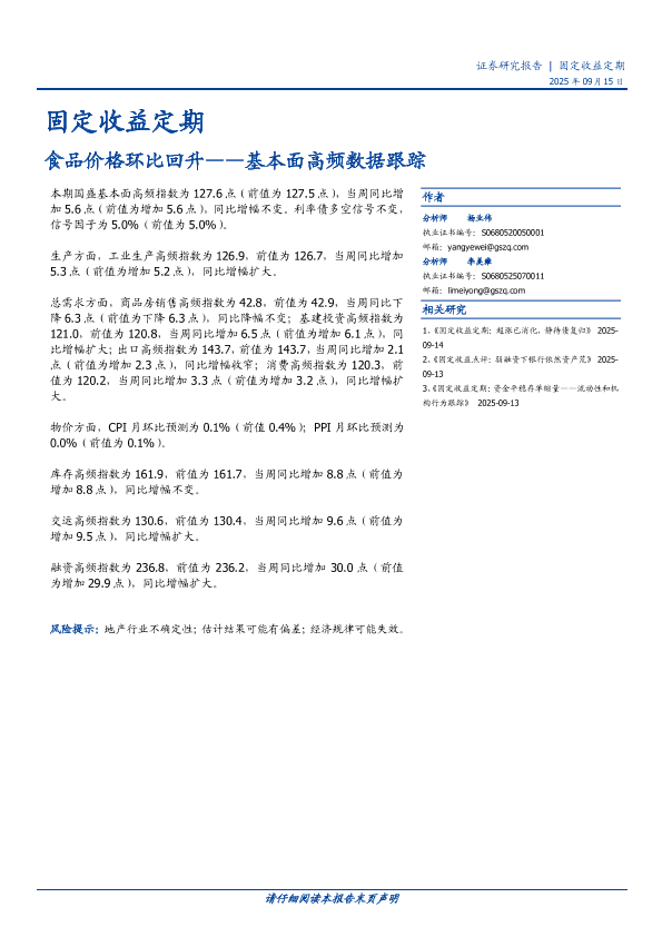 【国盛证券】【202509】基本面高频数据跟踪:食品价格环比回升-20页
