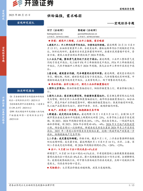 【开源证券】【202509】供给偏强,需求略弱-15页