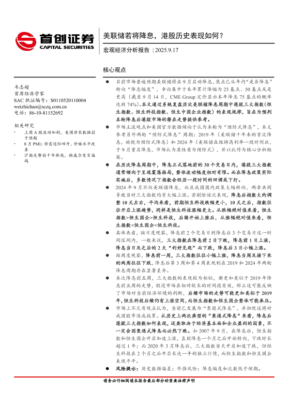 【首创证券】【202509】美联储若将降息,港股历史表现如何?-15页