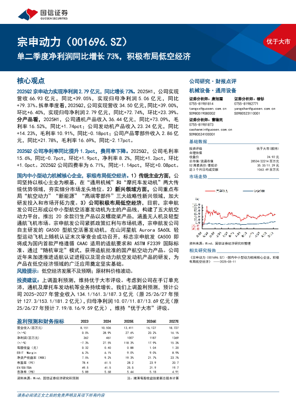 【国信证券】【202509】宗申动力(001696)单二季度净利润同比增长73%,积极布局低空经济-16页