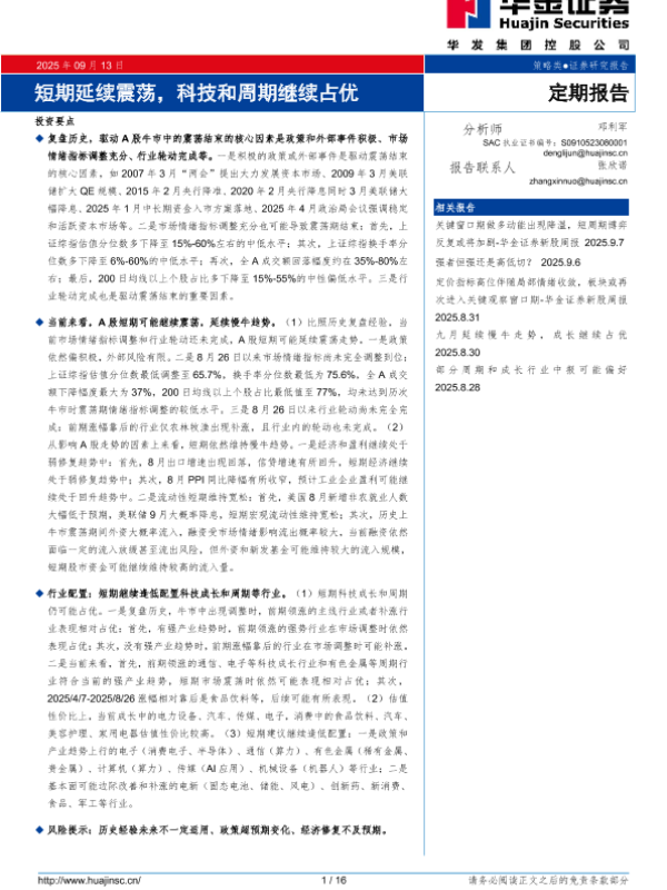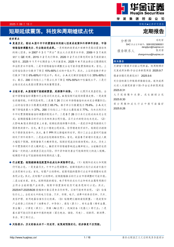 【华金证券】【202509】短期延续震荡,科技和周期继续占优-16页