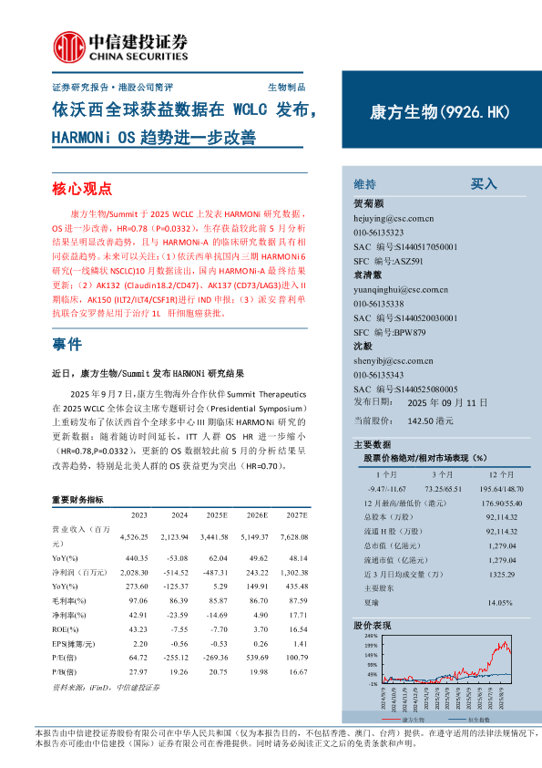 【中信建投证券】【202509】康方生物/Summit于2025 WCLC上发表HARMONi研究数据,OS进一步改善,HR=0.78(P=0.0332),生存获益较此前5月分析结果呈明显改善趋势,且与HARMONi-A的临床研究数据具有相同获益趋势。-10页