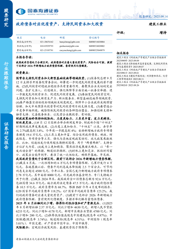 【国泰海通证券】【202509】政府债务对应优质资产,支持民间资本加大投资-20页