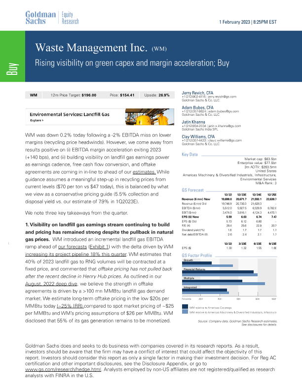 【Goldman Sachs】【20230201】Inc. (WM)_ 绿色资本支出增加和利润加速;买入-14页