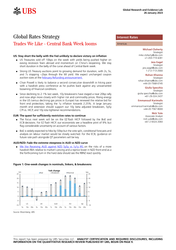 【UBS Securities LLC】【20230126】Global Rates Strategy _Trades We Like - Central Bank Week-14页