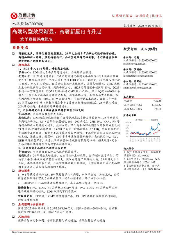 化妆品 品牌管理 财务预测 高端化转型 行业分析