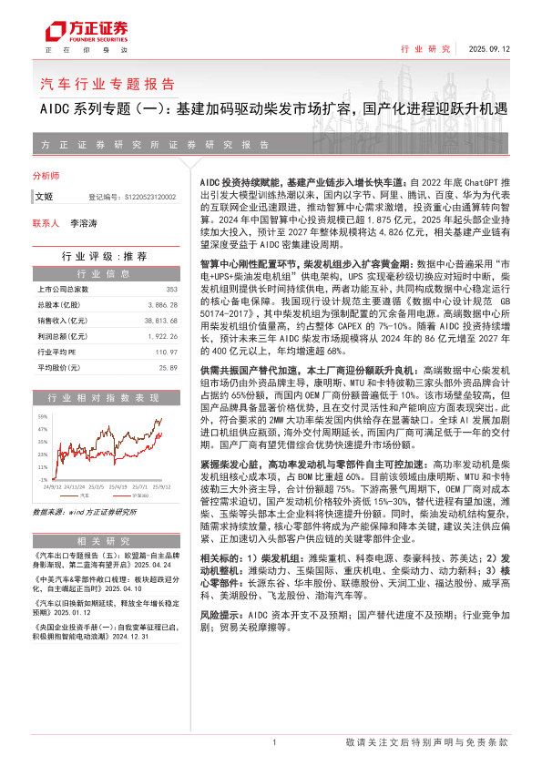 【方正证券】【202509】汽车行业专题报告-AIDC系列专题(一):基建加码驱动柴发市场扩容,国产化进程迎跃升机遇-13页