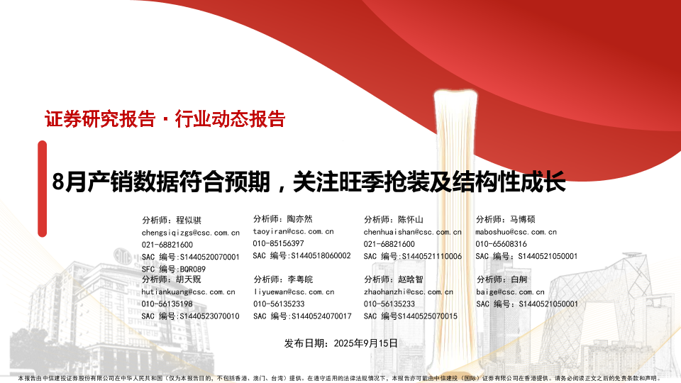 【中信建投证券】【202509】8月产销数据符合预期,关注旺季抢装及结构性成长-30页
