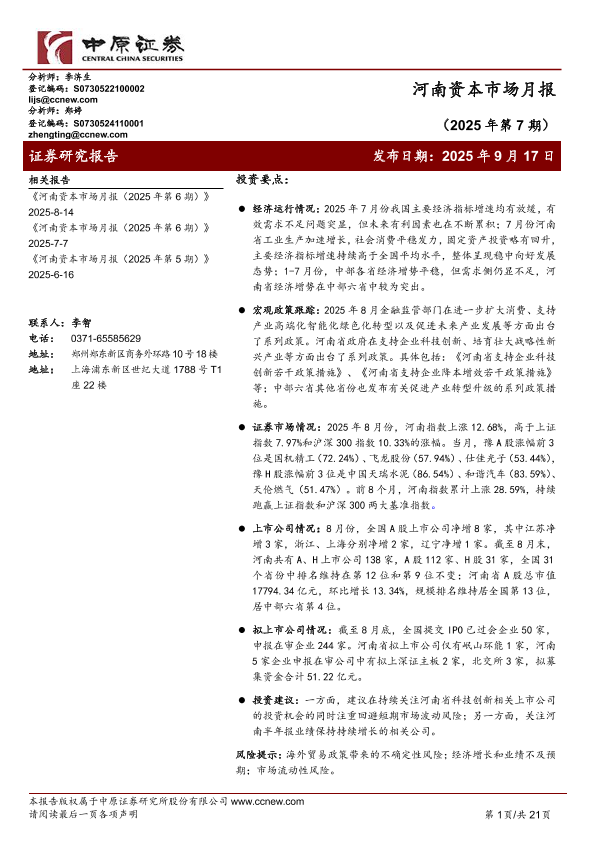 【中原证券】【202509】河南资本市场月报(2025年第 7期)-21页