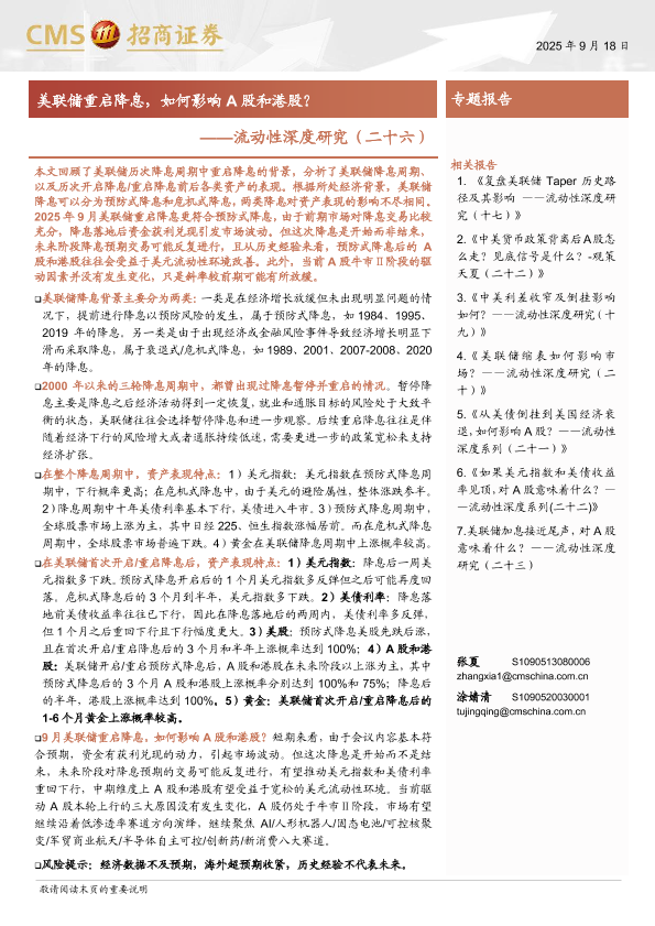 【海通证券】【202509】流动性深度研究(二十六):美联储重启降息,如何影响A股和港股?-11页