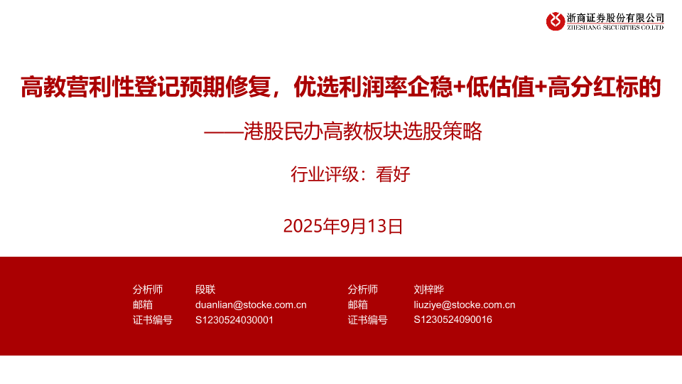 【浙商证券】【202509】高教营利性登记预期修复,优选利润率企稳+低估值+高分红标的——港股民办高教板块选股策略-20页