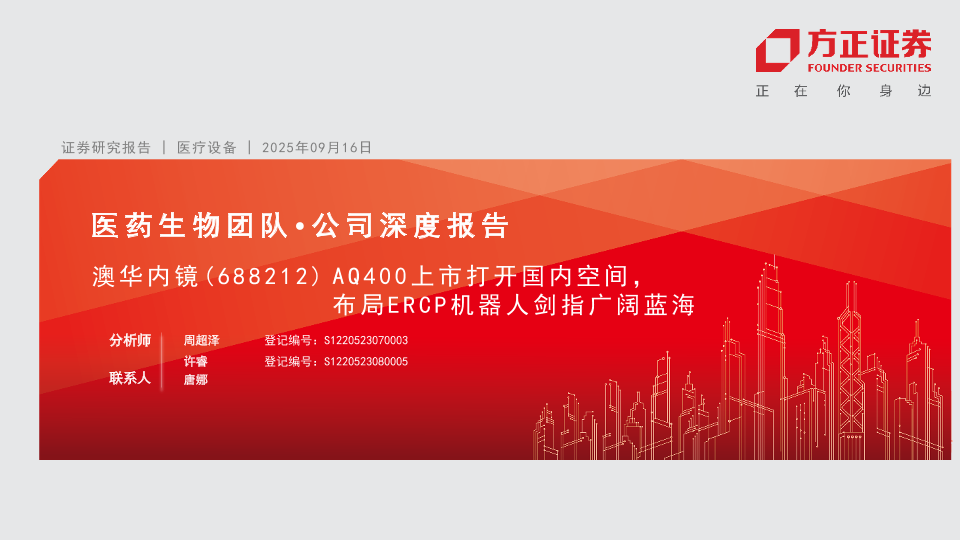 【方正证券】【202509】澳华内镜(688212)AQ+400上市打开国内空间,布局ERCP机器人剑指广阔蓝海-27页