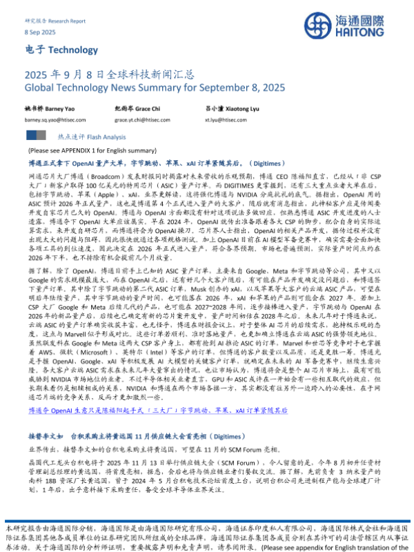 【海通国际】【202509】电子行业:2025年9月8日全球科技新闻汇总-15页