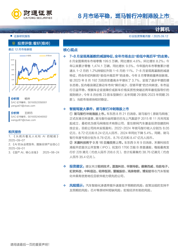 【财通证券】【202509】计算机行业投资策略月报:8月市场平稳,斑马智行冲刺港股上市-11页
