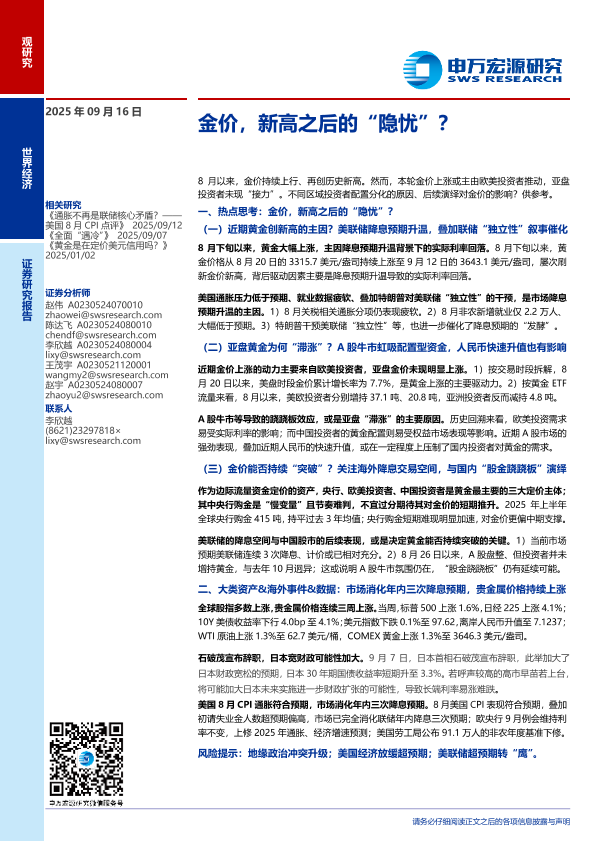 【申万宏源】【202509】金价,新高之后的“隐忧”?-30页