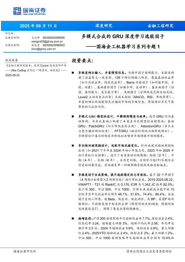 【国海证券】【202509】多模式合成的GRU深度学习选股因子——国海金工机器学习系列专题1-21页
