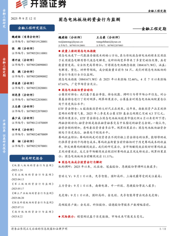 【开源证券】【202509】金融工程定期:固态电池板块的资金行为监测-11页