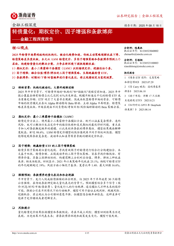 【浙商证券】【202509】转债量化:期权定价、因子增强和条款博弈-15页