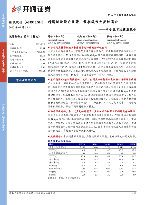 【开源证券】【202509】中小盘首次覆盖报告:精密制造能力显著,长期成长天花板高企-12页