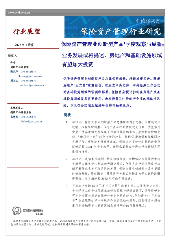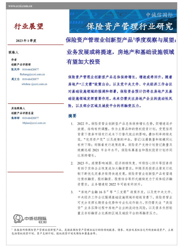 【中诚信国际】【20230101】中诚信-保险资产管理业创新型产品季度观察与展望(2023年1季度)-11页