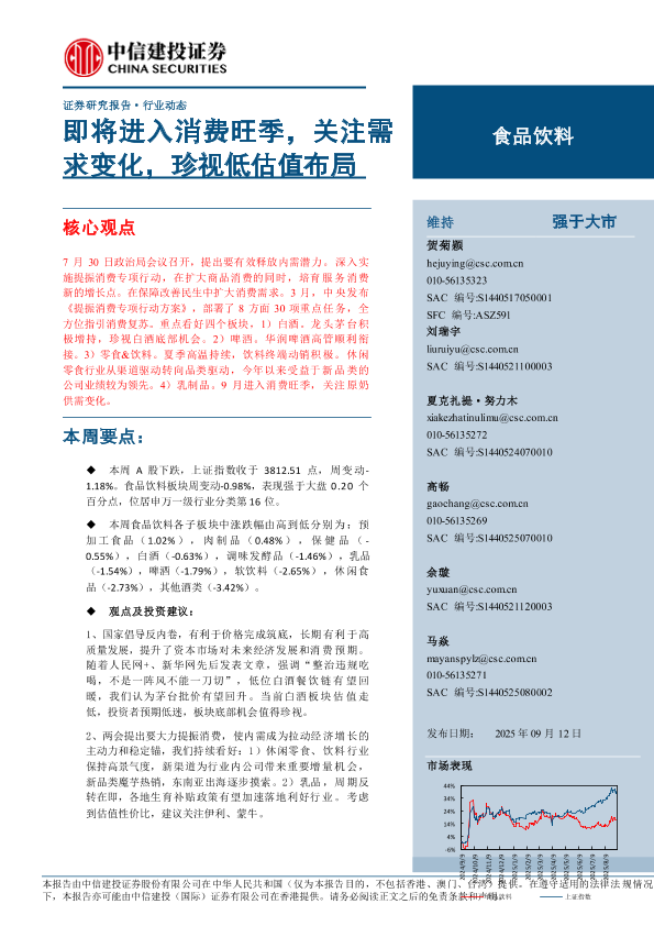 【中信建投证券】【202509】食品饮料行业动态:即将进入消费旺季,关注需求变化,珍视低估值布局-20页