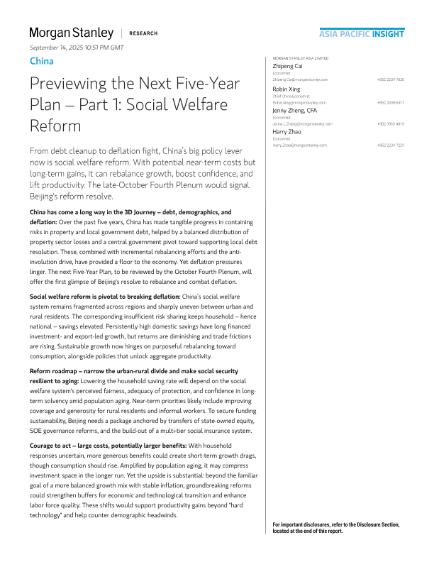 【Morgan Stanley】【2025】Previewing the Next Five-Year Plan-Part1 Social Welfare Reform-24页