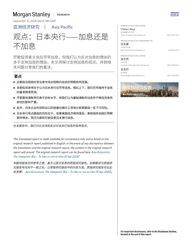 【Morgan Stanley】【202509】日本央行——加息还是不加息-14页