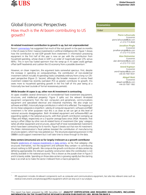 【UBS】【2025】Global Economic Perspectives How much is the Al boom contributing to US growth?-9页