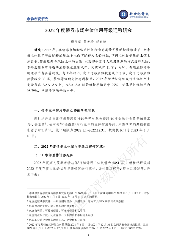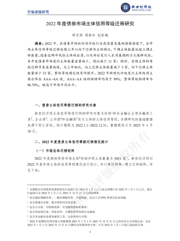 【新世纪评级】【20230110】2022年度债券市场主体信用等级迁移研究-13页