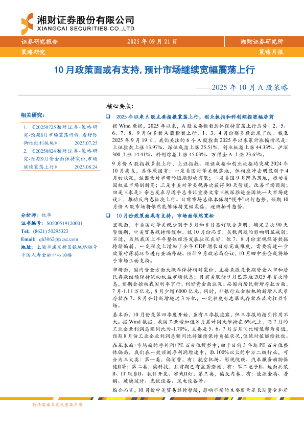 【湘财证券】【202509】2025年10月A股策略:10月政策面或有支持,预计市场继续宽幅震荡上行-12页
