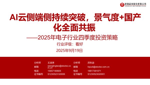 【浙商证券】【202509】AI云侧端侧持续突破,景气度+国产 化全面共振——2025年电子行业四季度投资策略-41页