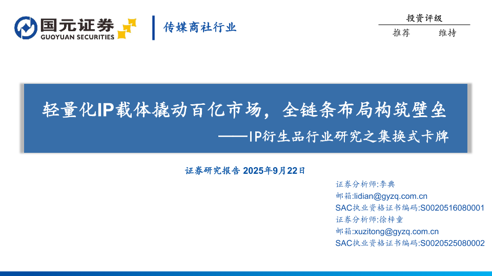 【国元证券】【202509】轻量化IP载体撬动百亿市场,全链条布局构筑壁垒——IP衍生品行业研究之集换式卡牌-51页