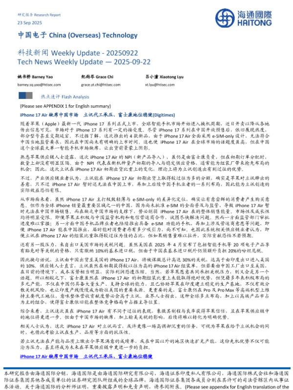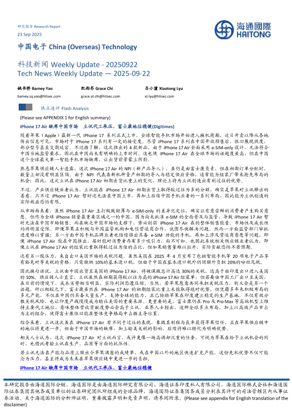 【海通国际】【202509】中国电子 China(Overseas) Technology-18页