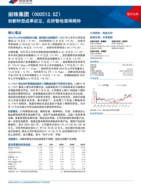 【国信证券】【202509】丽珠集团(000513.SZ)创新转型成果初见,在研管线值得期待-23页