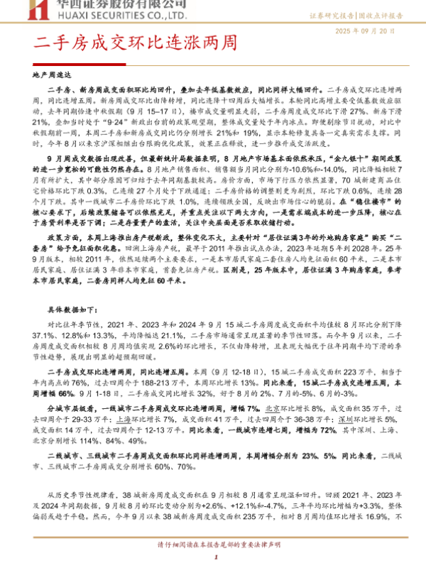 【华西证券】【202509】二手房成交环比连涨两周-15页