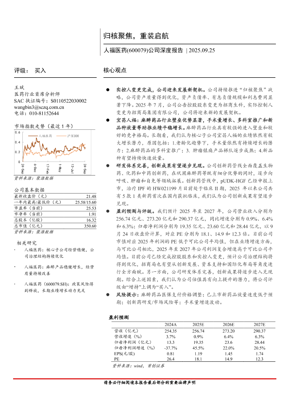 【首创证券】【202509】人福医药:核心子公司经营稳健,公司治理结构持续优化-26页