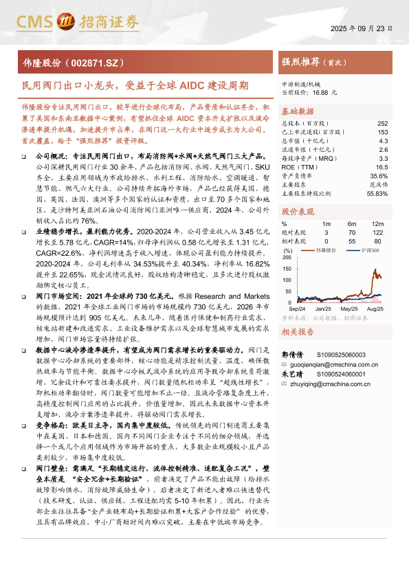 【海通证券】【202409】伟隆股份(002871)民用阀门出口小龙头,受益于全球AIDC建设周期-25页